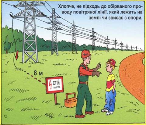 - Залазити на опори повітряних ліній електропередач, тим більше намагатись зняти електропровід;